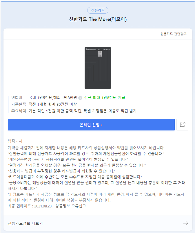 신한 더 모아 카드를 발급 받았다.주저리주저리 2021. 8. 23. 23:51