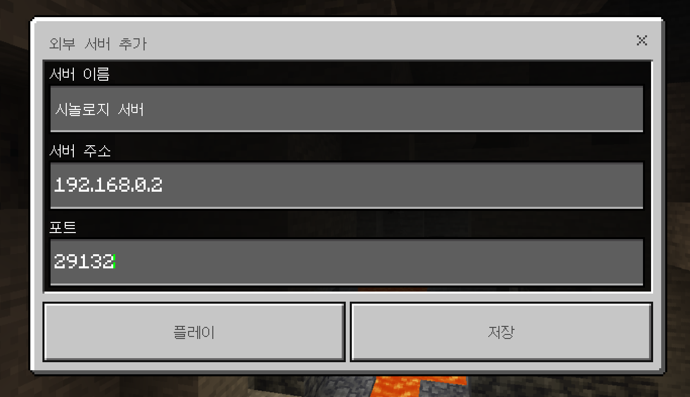 포트 : 아까전에 설정한 포트 번호 19132를 입력하면 된다(작성자는 29132로 생성함)