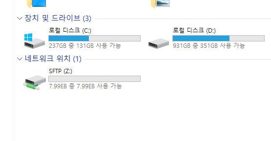 2. winfsp + sshfs 조합으로 사용해보았으나 자잘한 오류가 있고 레이드라이브보다 느리고 불편