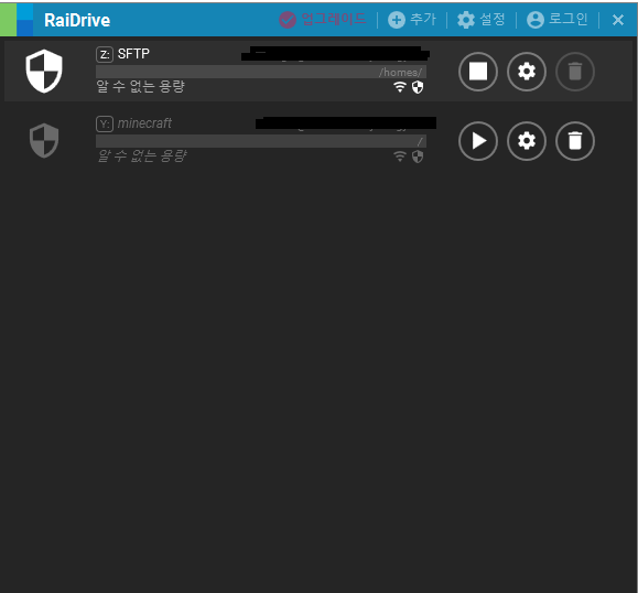그래서 SFTP를 쓰기로 한것까지는 좋은데, SFTP는 어떻게 연결할 것이냐가 문제였다. webDAV를 사용한 이유 중 하나는 윈도우 자체 탐색기를 통해 접속을 지원한다는 점이였다. 파일질라로 접속하는 것도 가능하지만, 투박하고 매우 개발자스러운 UI를 가진 프로그램을 사용하긴 싫었다. 그렇게 인터넷을 찾아보던 중 레이드라이브에 대해 알게 되었다. 찾아보며 NetDrive같은 유사제품들도 알게 되었지만, 이미 완벽하게 한글을 지원하고 깔끔해보이는 레이드라이브를 알게 되었기 때문에 바로 설치해서 사용해보았다.
